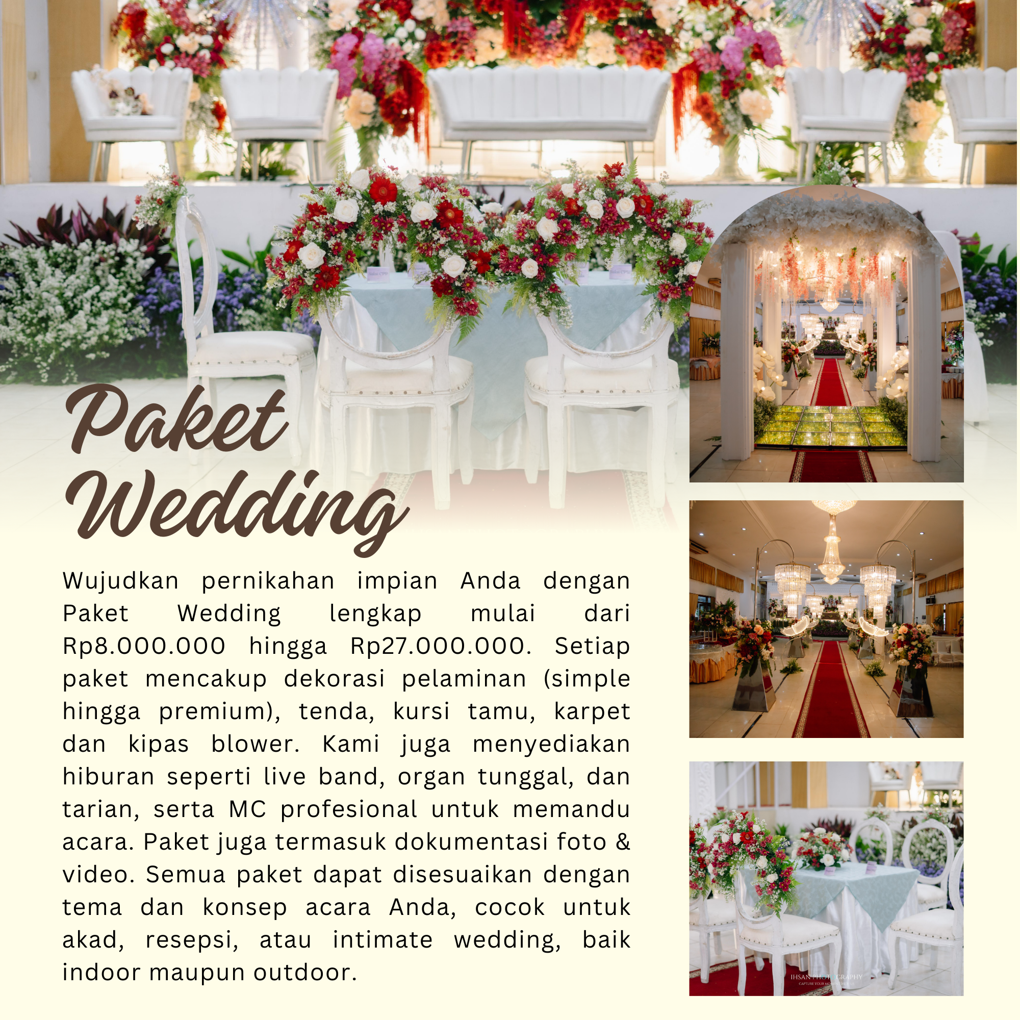 Lihat berbagai pilihan paket kami yang dirancang untuk memenuhi kebutuhan acara Anda, sesuai dengan gaya dan anggaran.